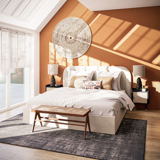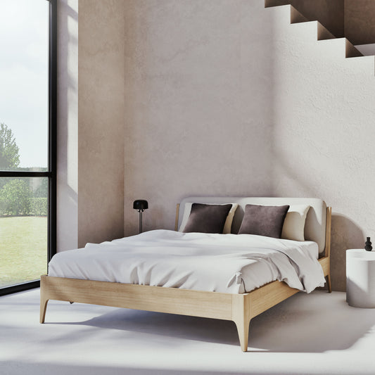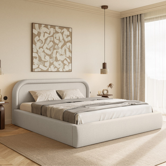 Lit Double Japandi en Tissu Beige 180x200 – Batilly