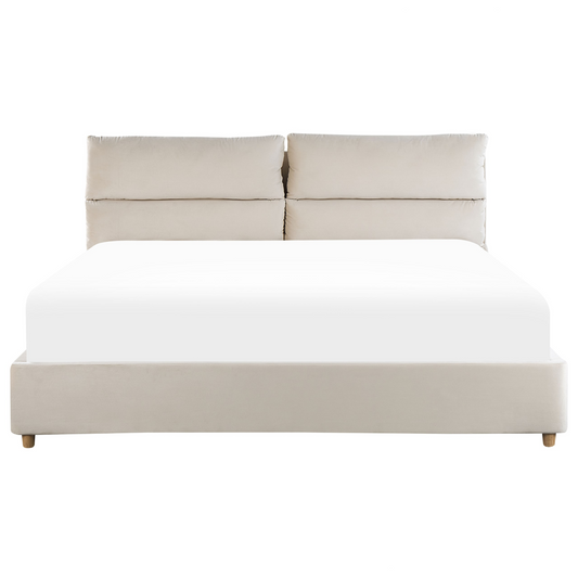 Lit Coffre Japandi 180x200 cm Velours Beige avec Tête de Lit – Suzon
