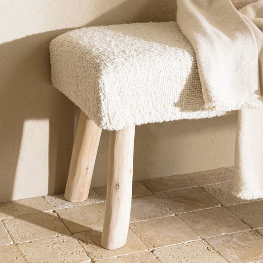 Banc en Tissu Bouclette et Bois Japandi L120cm – Chester