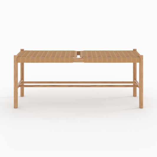Banc 2 places en bois de chêne massif avec tressage Japandi – Kepler