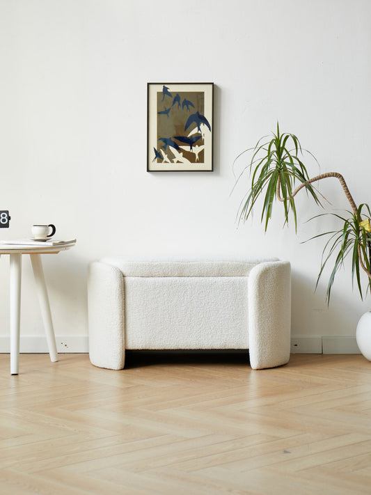 Banc Japandi rembourré en tissu bouclette blanc – Full XL