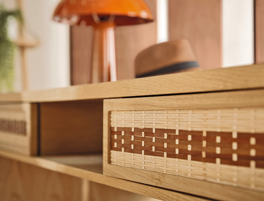 Bureau Japandi 2 tiroirs 1 niche en bambou tressé – Varuna