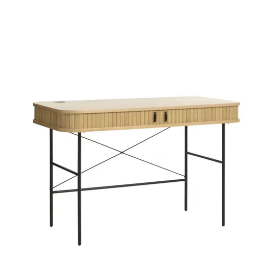 Bureau Japandi 2 portes Arrondies Bois & Métal Clair 120 cm – Alicia