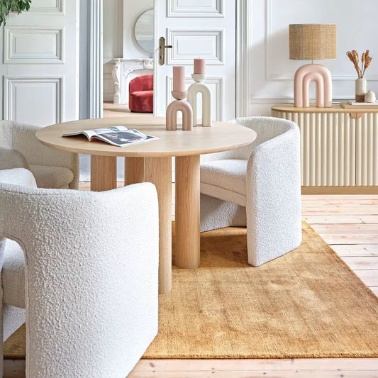 Chaise Japandi en bois d’hévéa massif et bouclettes écrues – DONUT