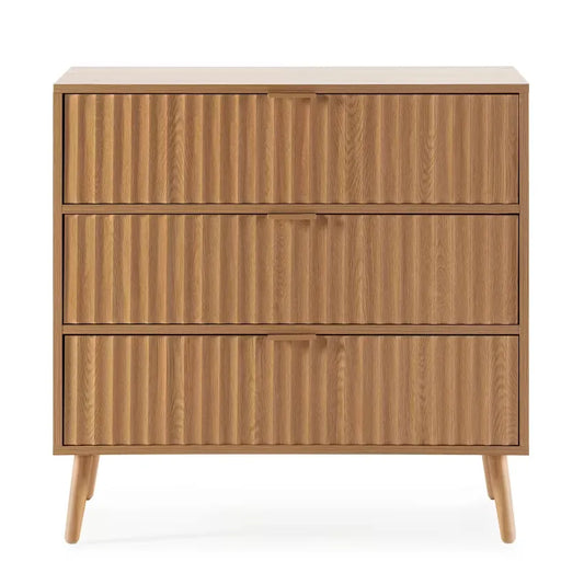 Commode Japandi 3 Tiroirs Effet Chêne 80 cm – Lluvia