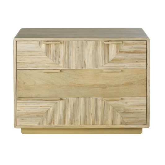 Commode Japandi 3 tiroirs marqueterie rotin beige – Ratane