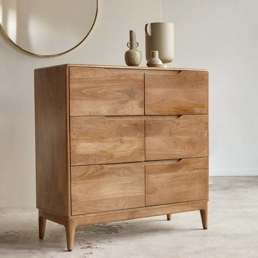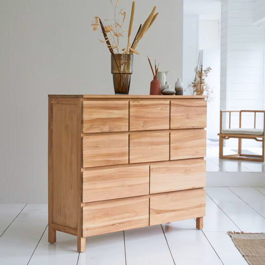 L'esthétique unique de cette collection réside dans sa capacité à créer un dialogue entre les intérieurs modernes et les valeurs traditionnelles d’ordre et d’harmonie prônées par les cultures japonaise et scandinave. En intégrant une commode Japandi dans votre espace, vous faites entrer un morceau d'équilibre qui transcende les tendances passagères pour se poser comme un choix durable. La Collection de Commodes Japandi promet ainsi non seulement d'améliorer votre cadre vie par son aspect pratique mais aussi d'enrichir esthétiquement votre quotidien grâce à sa beauté subtilement équilibrée.
