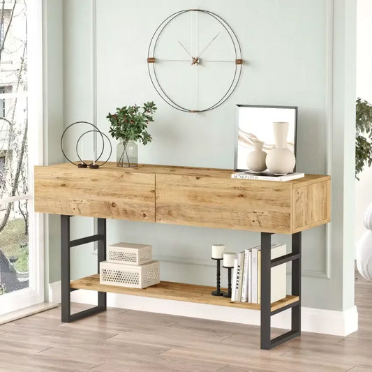 Console Japandi Bois Chêne 2 tiroirs 120 cm – Utica