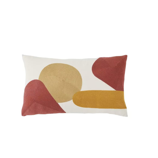 Coussin brodé écru jaune terracotta Japandi 30x50 - ASILAH