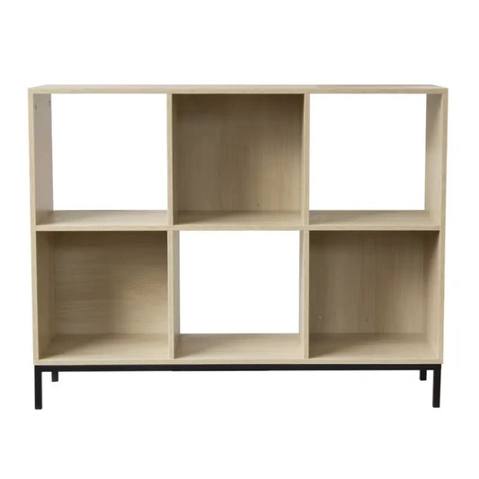 Étagère Japandi 6 Cases Effet Bois Clair & Pieds Métal – Sana