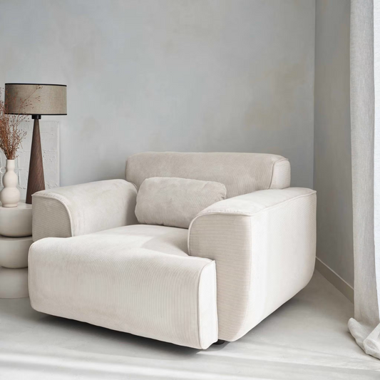 Grand Fauteuil Japandi en Velours Côtelé