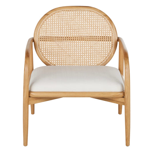 Fauteuil Japandi écru avec cannage en rotin – Linette