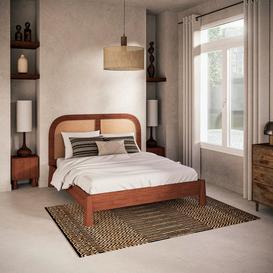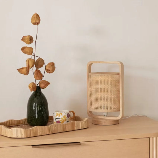 Lampe Japandi Rotin Tressé & Lin Beige – Tanger
