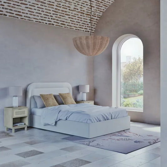 Lampe Japandi Dolomite Blanche & Raphia – Florentin