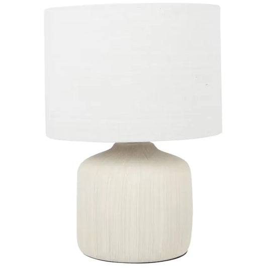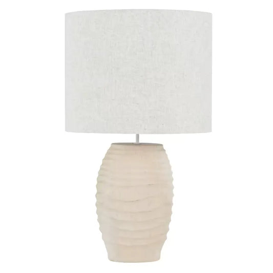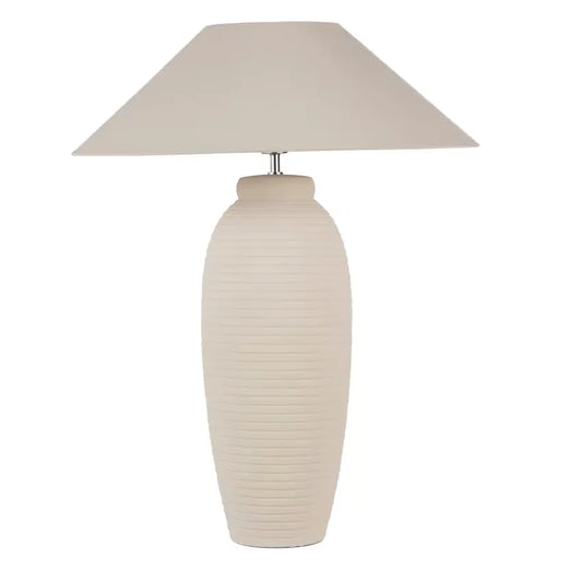 Lampe Japandi Céramique Striée & Abat-jour Beige Crème – Seban