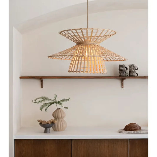 Suspension Japandi en bambou beige D35 – ASSOUANA
