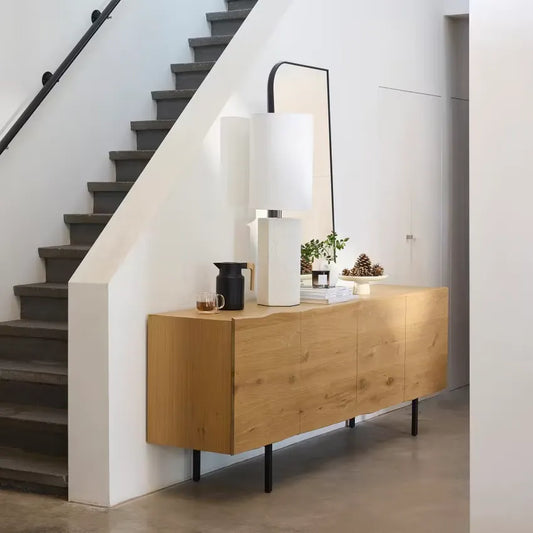 Introduire un miroir Japandi dans son intérieur permet non seulement d’amplifier visuellement l’espace grâce à sa capacité à refléter la lumière, mais aussi d'y ajouter une touche zen particulièrement appréciée dans les espaces de vie modernes. Facilement intégrables dans différentes pièces — qu'il s'agisse du salon, de la chambre ou même de l'entrée — ces miroirs sont plus qu'un simple objet décoratif; ils participent activement à créer une atmosphère paisible et ordonnée. En fait, ils incarnent parfaitement cette recherche d’équilibre entre beauté naturelle et minimalisme fonctionnel qui définit si bien le style Japandi.