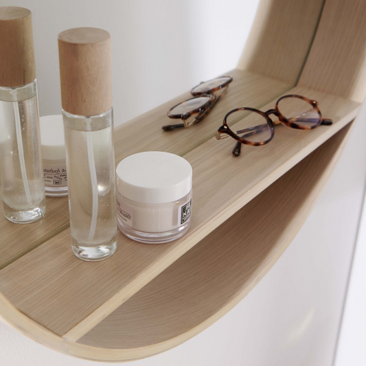 Miroir Rond Japandi avec Étagère en Chêne 60 cm – Oblo