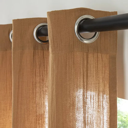 Rideau Japandi Œillets Gaze de Coton Camel 140×300 – Casi
