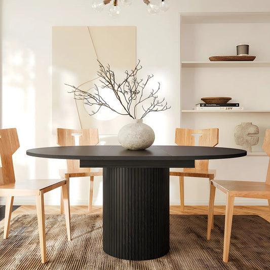 Table à Manger Extensible Japandi 4 à 6 Personnes Bois Noir ø120 - Toscana