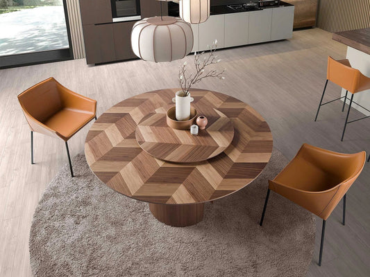Table à Manger Japandi ronde 4 personnes marbre et bois massif – Sorong
