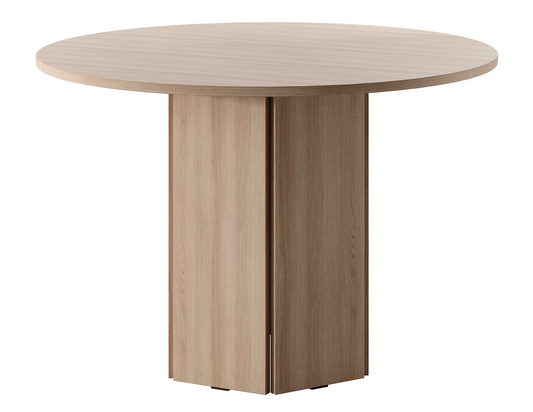 Table à Manger Ronde Japandi aspect bois de chêne beige 110x75 cm – HEXA