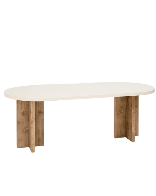 Table de Salle à Manger Ovale Japandi en Microciment Blanc Cassé 180x75cm – Tokyo