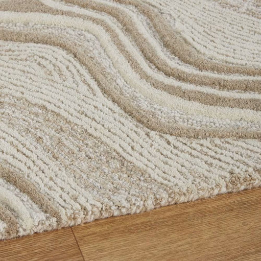 Tapis Japandi vagues beige marron 140x200 - JORARI