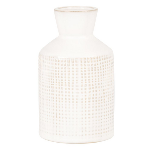 Vase en grès blanc Japandi motif quadrillé beige H13