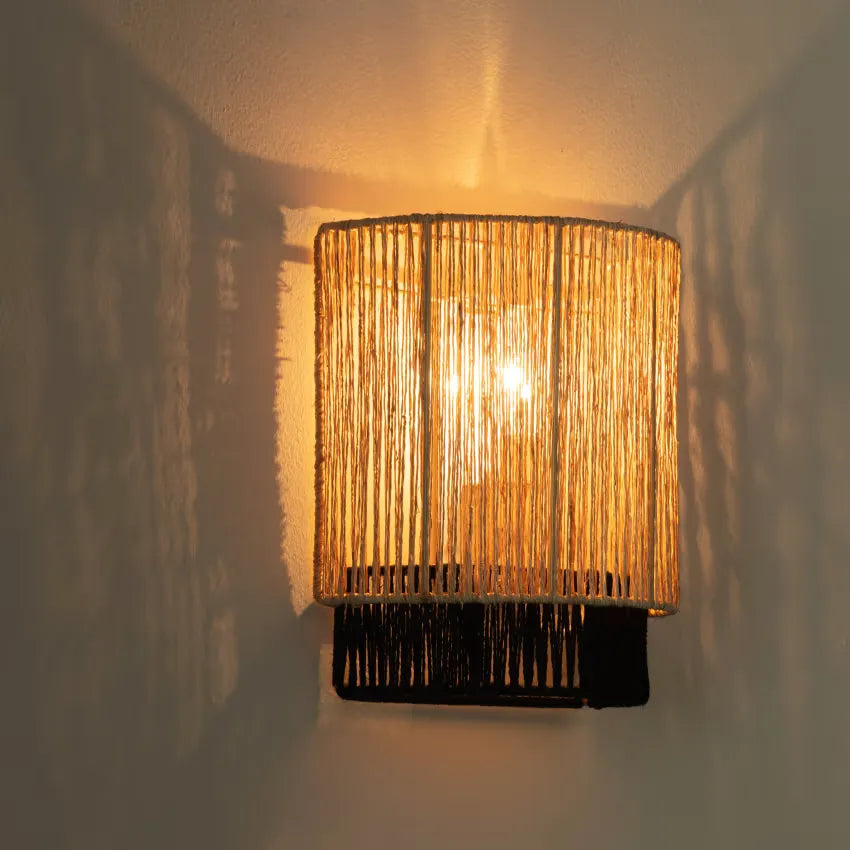 Cette applique murale tendance combine matériaux naturels et design contemporain. Le tressage artisanal du jute crée un motif linéaire dynamique, permettant à la lumière de filtrer délicatement pour une ambiance relaxante dans votre espace de vie, idéale pour les adeptes du minimalisme fonctionnel.