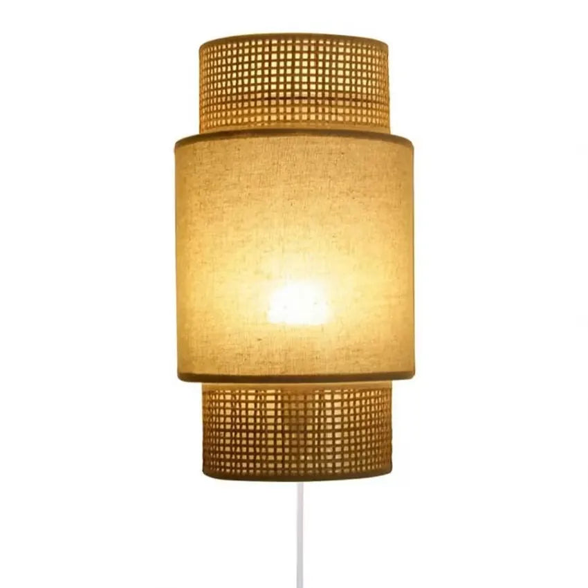 Le rotin tressé naturel encadre délicatement un tissu beige qui diffuse une lumière douce et apaisante. Ses dimensions de 18 × 9,5 × 33 cm en font un élément idéal pour sublimer vos espaces de vie ou de repos, tandis que sa douille E14 vous permet de personnaliser l'intensité lumineuse selon vos besoins.