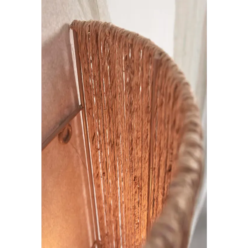 La structure en fils textiles bruns offre un jeu d'ombre fascinant qui transforme votre mur en œuvre d'art vivante. Chaque ligne verticale capte et réfracte la lumière ambiante, créant un effet visuel subtil et chaleureux. Cette pièce d'éclairage devient le point focal de votre espace, même éteinte, grâce à sa texture distinctive.