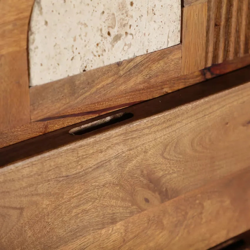 Le bois de manguier confère à ce meuble une chaleur naturelle et une durabilité exceptionnelle. Sa teinte marron profonde met en valeur les veines du bois, tandis que sa finition soignée sublime chaque détail de sa conception artisanale, pour un meuble qui traverse les tendances avec élégance.