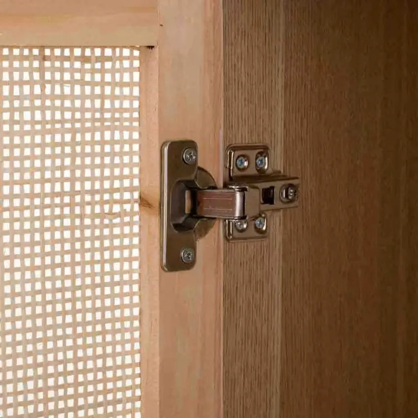 La structure élancée de cette armoire permet une intégration discrète même dans les espaces limités. Son association de bois chaleureux et de treillis raffiné illustre parfaitement la philosophie wabi-sabi qui célèbre la beauté dans l'imperfection et la simplicité. Idéale comme rangement d'appoint dans un couloir, bibliothèque d'appoint dans un bureau ou même table de chevet originale dans une chambre minimaliste.