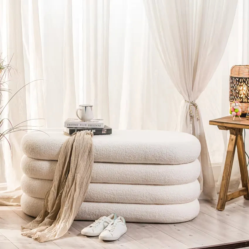 Sa forme arrondie et ses trois niveaux superposés créent une silhouette distinctive qui évoque la douceur. Le tissu bouclette premium offre une résistance exceptionnelle à l'usure quotidienne tout en conservant son aspect impeccable. Pour maximiser son intégration, associez-le à des accessoires naturels comme des coussins en lin, des paniers tressés ou des éléments en bois clair qui amplifieront l'harmonie visuelle de votre décoration.