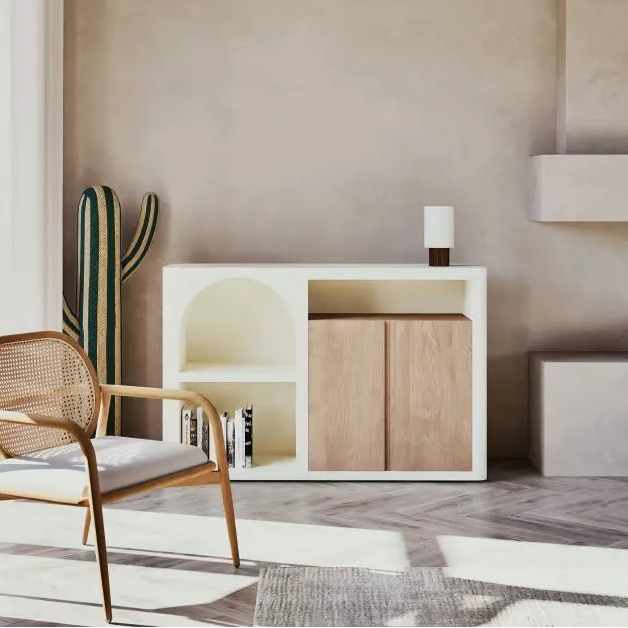 Bibliothèque Japandi Basse 2 Portes 1 Niche Blanc Crème – Sartene