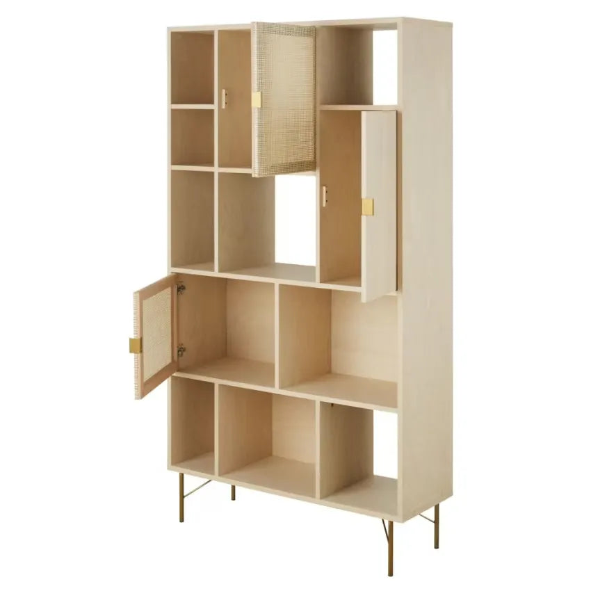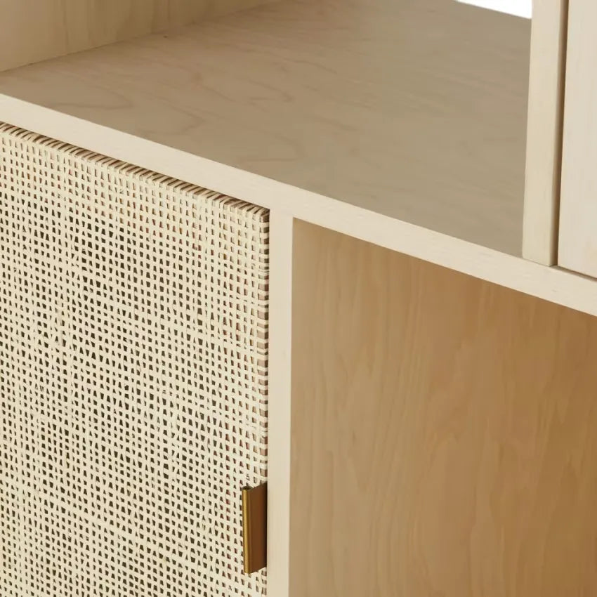 Bibliothèque Japandi Déstructurée 3 Portes Cannage Rotin – Solstice