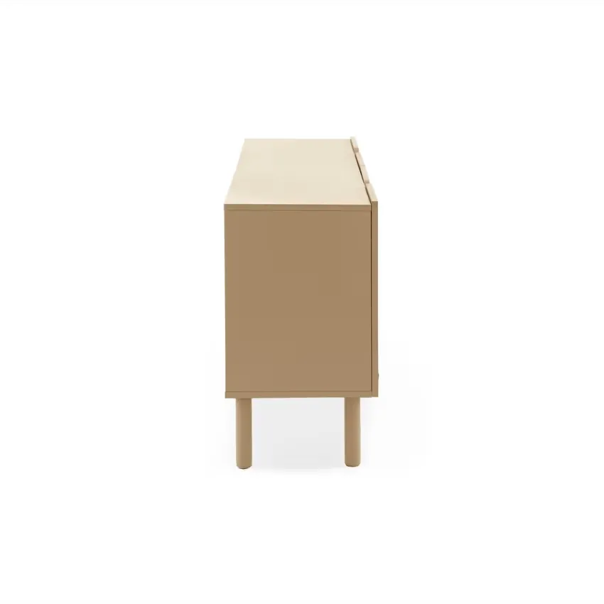 Découvrez l'élégance minimaliste du buffet Japandi beige aux bords arrondis, idéal pour une décoration épurée et fonctionnelle.