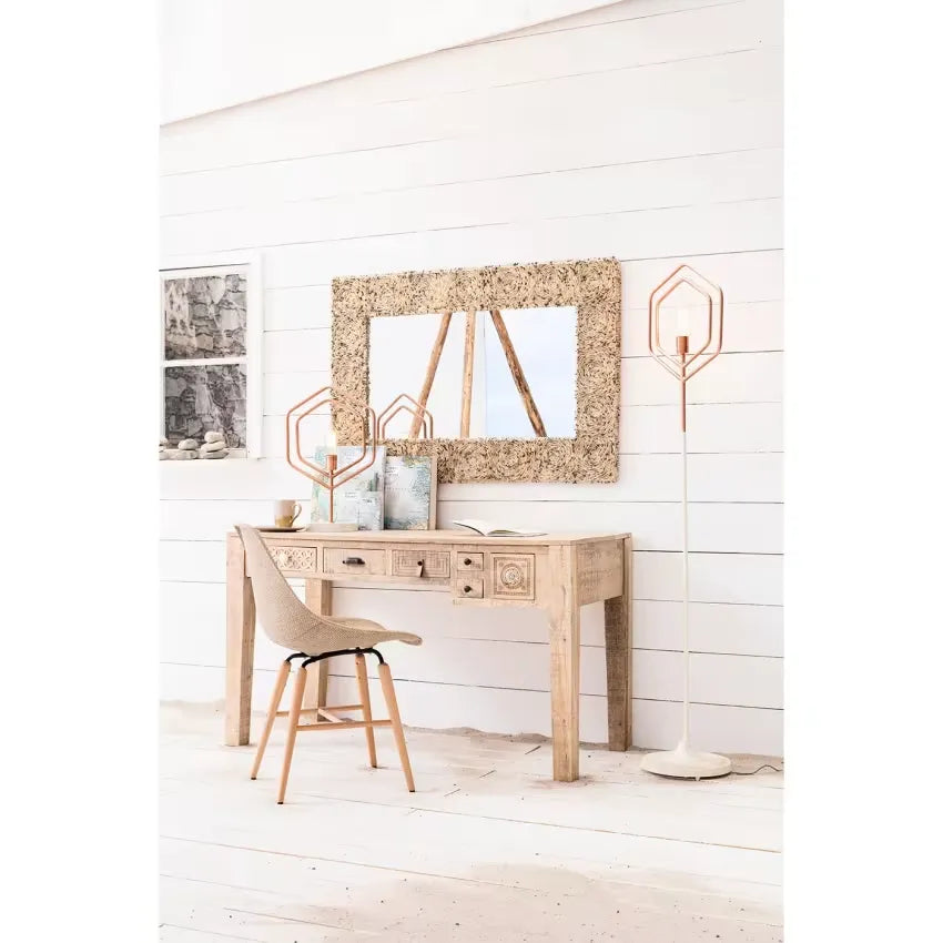 Adoptez l'élégance du Bureau Japandi en manguier massif avec ses six tiroirs uniques pour optimiser votre espace de travail avec style.