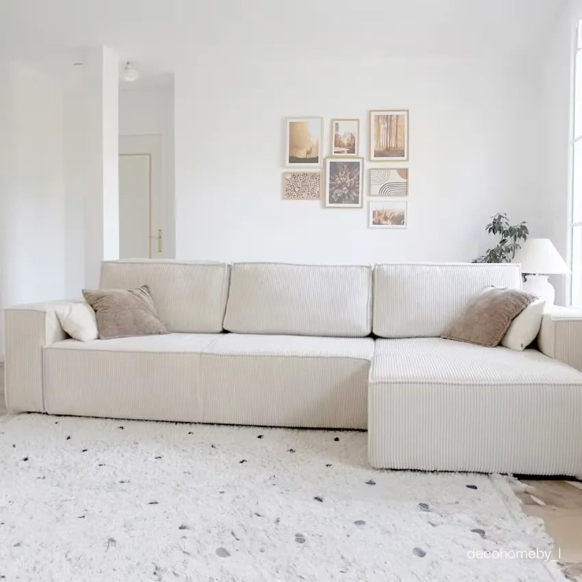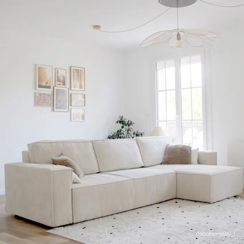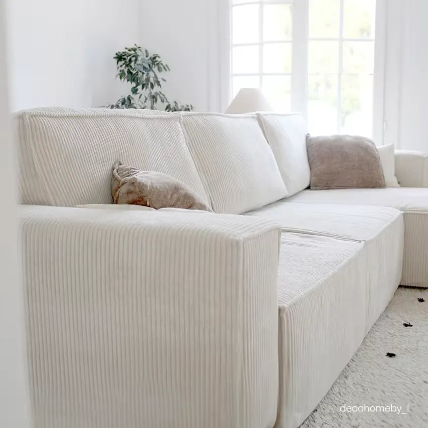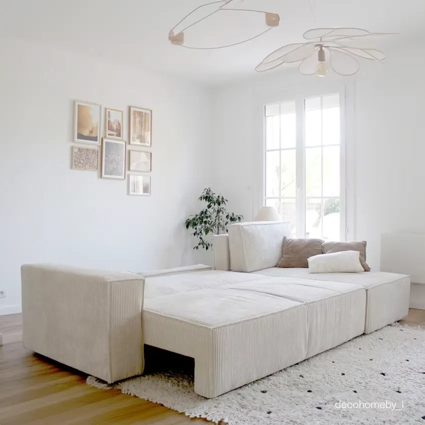Transformez votre espace avec ce canapé Japandi convertible, alliant velours côtelé et design modulaire pour un confort et une adaptabilité incroyables.