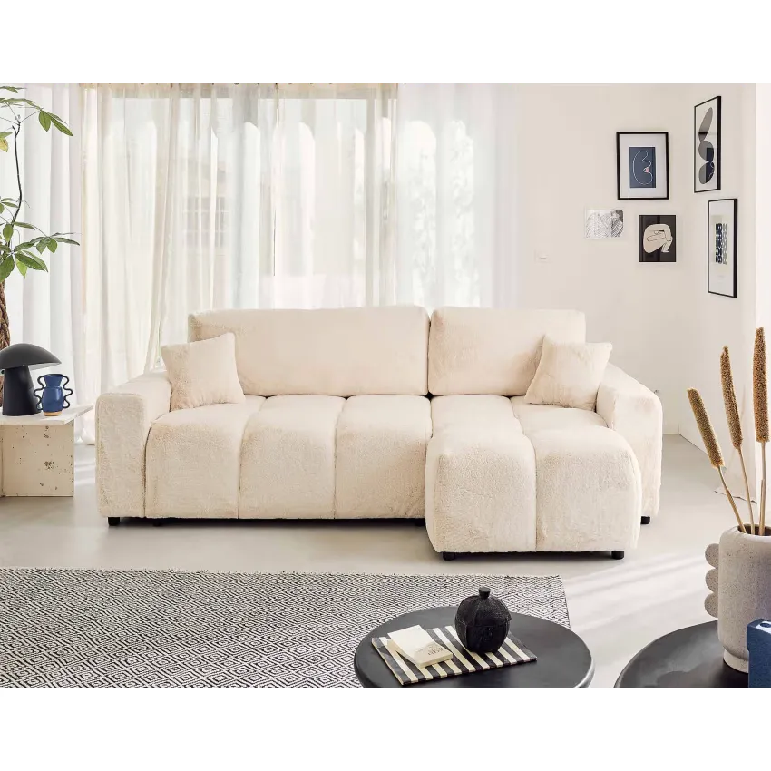 Canapé Japandi Angle Réversible Convertible 4 Places Fausse Fourrure – Crocus