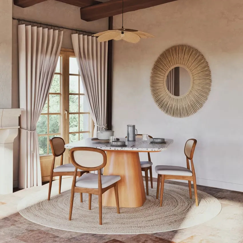 Découvrez l'élégance minimaliste de notre chaise en hévéa naturel et lin écru tressé, parfaite pour un intérieur Japandi distingué.