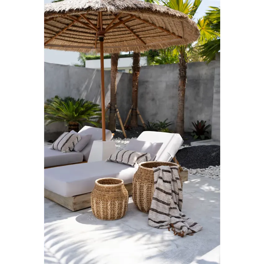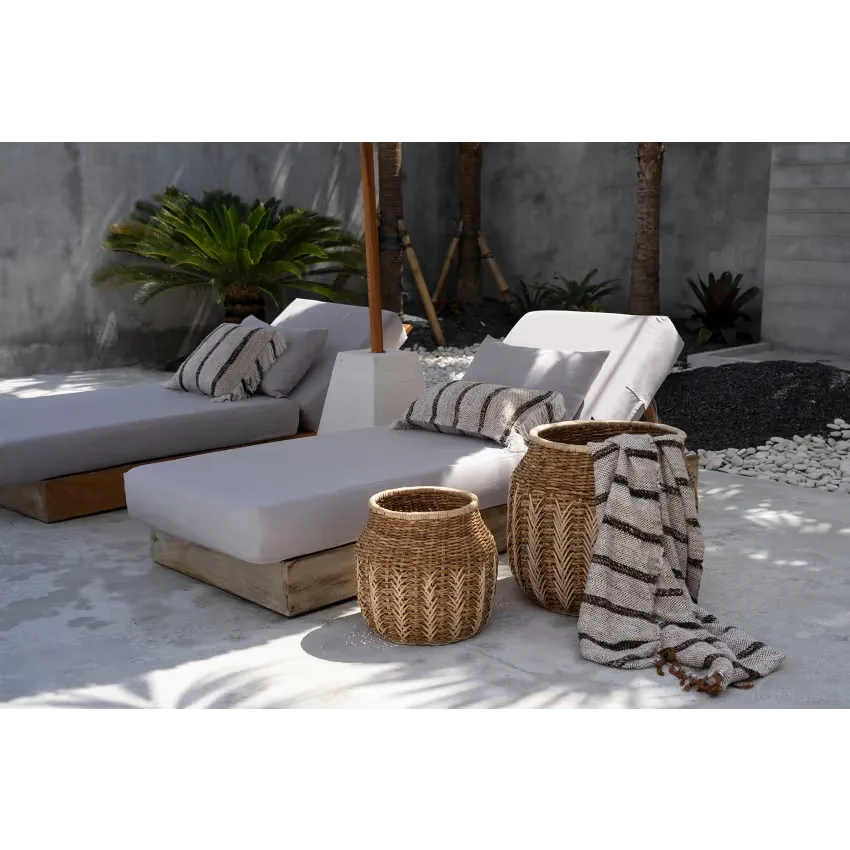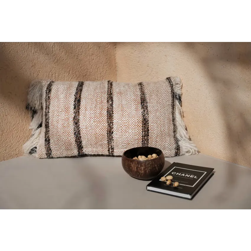 Le coussin Japandi Summer en coton blanc et noir apporte une dimension artisanale authentique à votre décoration. Ses rayures longitudinales et ses franges texturées s'harmonisent parfaitement avec vos canapés au design minimaliste pour une ambiance à la fois épurée et chaleureuse.