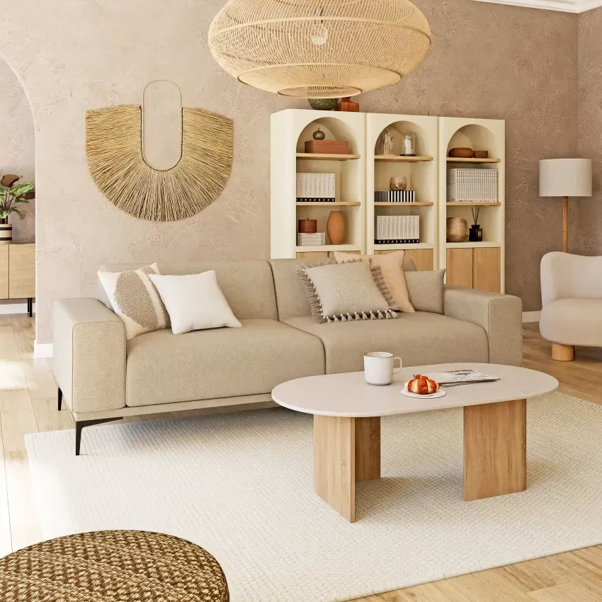 Le coussin Japandi Limana allie élégance et éthique environnementale avec son coton recyclé tissé beige. Sa texture authentique et ses délicats pompons décoratifs en font un ajout parfait à votre collection d'accessoires textiles Japandi. Son format carré de 50×50 cm offre une présence équilibrée sur tout type d'assise.