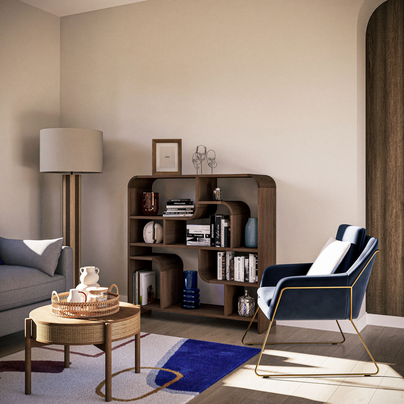 Le style japandi vintage s'invite dans votre intérieur avec cette étagère en bois massif aux lignes asymétriques et épurées. Explorez toute notre gamme d'éléments de rangement design pour créer un espace harmonieux et fonctionnel.