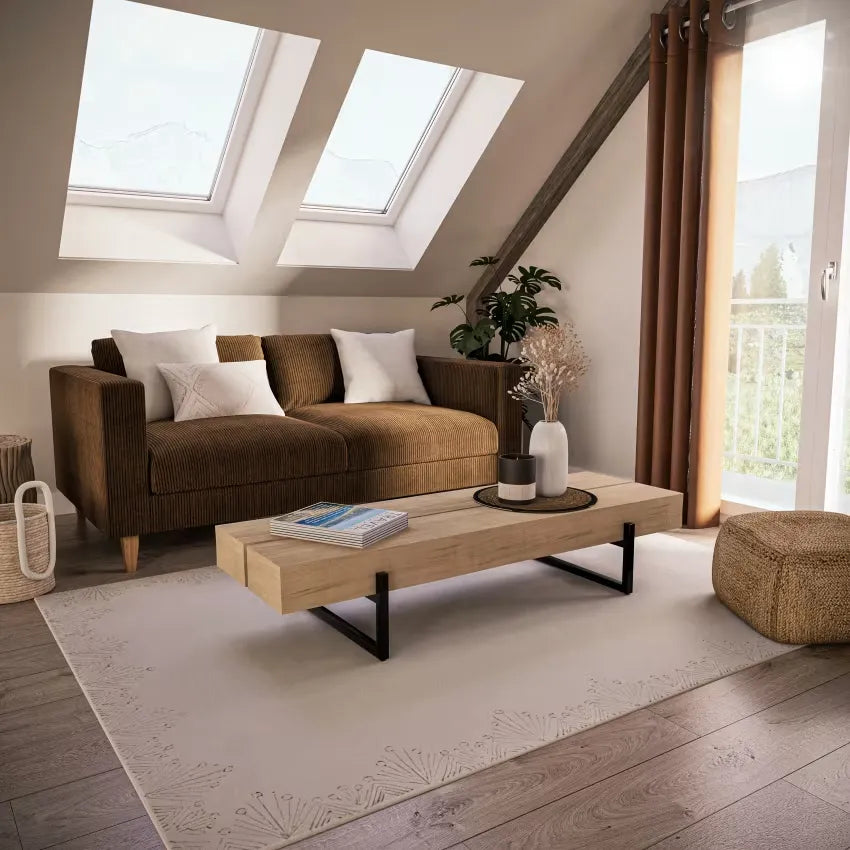 Son coloris écru naturel s'intègre harmonieusement dans tout intérieur, tandis que ses motifs géométriques en relief créent un effet tridimensionnel captivant. Le grand losange central encadré de franges délicates apporte une finition artisanale raffinée, parfaite expression de l'équilibre japandi entre simplicité scandinave et perfection japonaise.