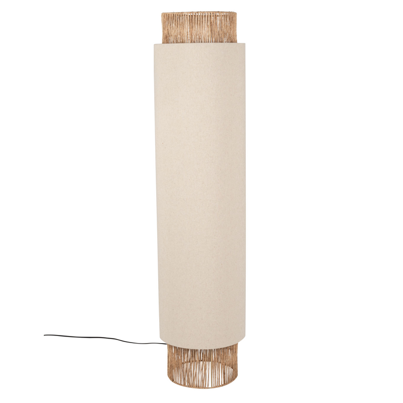 Lampadaire Japandi tube en lin et jute H126 – Cundelee