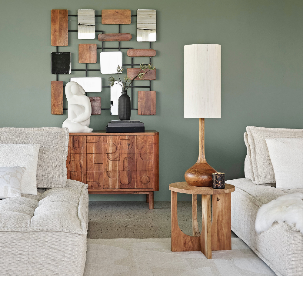 Lampe Japandi en bois de manguier avec abat-jour en lin beige – Hagginwood