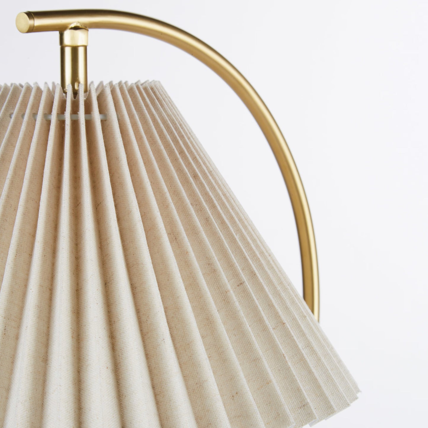 Lampe Japandi en métal doré avec abat-jour conique beige – Bérénice