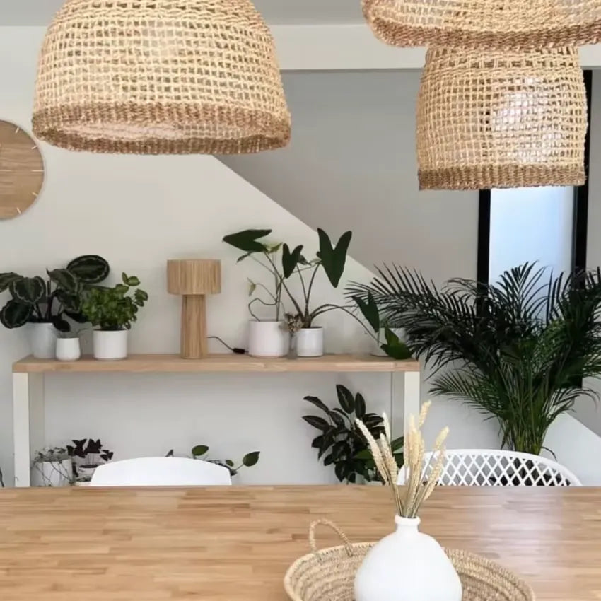 La lampe Rosy Raphia incarne parfaitement l'équilibre esthétique recherché dans la philosophie japandi. Son tressage minutieux crée des jeux d'ombres délicats sur vos murs, transformant instantanément l'atmosphère de votre pièce dès que vous l'allumez. Chaque détail artisanal raconte une histoire unique.